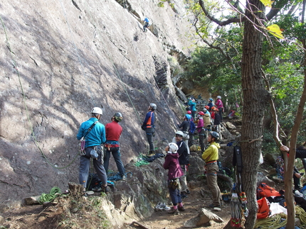伊豆の大仁町にひときわ目を引いてそびえるのが城山です。南関東では珍しくマルチピッチが味わえるゲレンデとして古くからクライマーに愛されてきた岩場です。オリソンテ登山学校では11月29日、その城山でロッククライミング講習会を開催しました。
